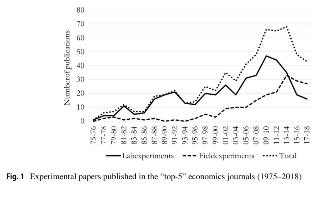 - There is not a general drop in experimental publications but rather a shift. There is a shift from laboratory experiments to field experiments.