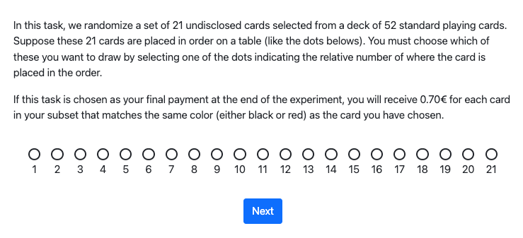 *Chen, D. L., Schonger, M., & Wickens, C. (2016). oTree—An open-source platform for laboratory, online, and field experiments. Journal of Behavioral and Experimental Finance, 9, 88-97.